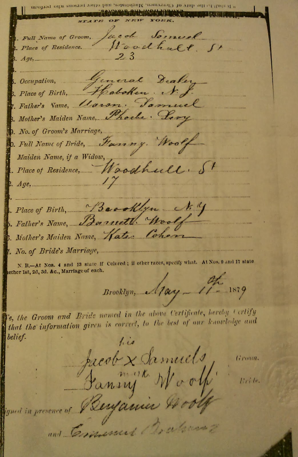 Oh! Wait….I do have a document with signatures on it!!! I have a copy of John and Fanny’s marriage certificate. Check it out…..