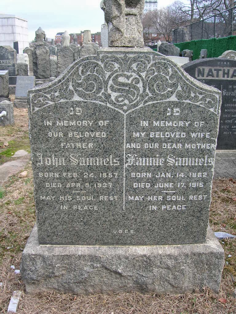 | Burial plot of Aaron Samuel and his wife the former Phoebe Levy Washington Cemetery, Brooklyn, New York |