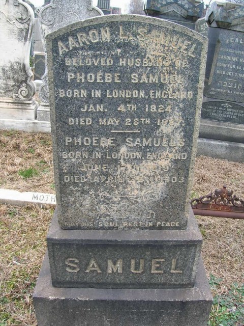 This is the headstone for my 3rd great-grandfather, Aaron Samuel and his wife, the former Phoebe Levy.