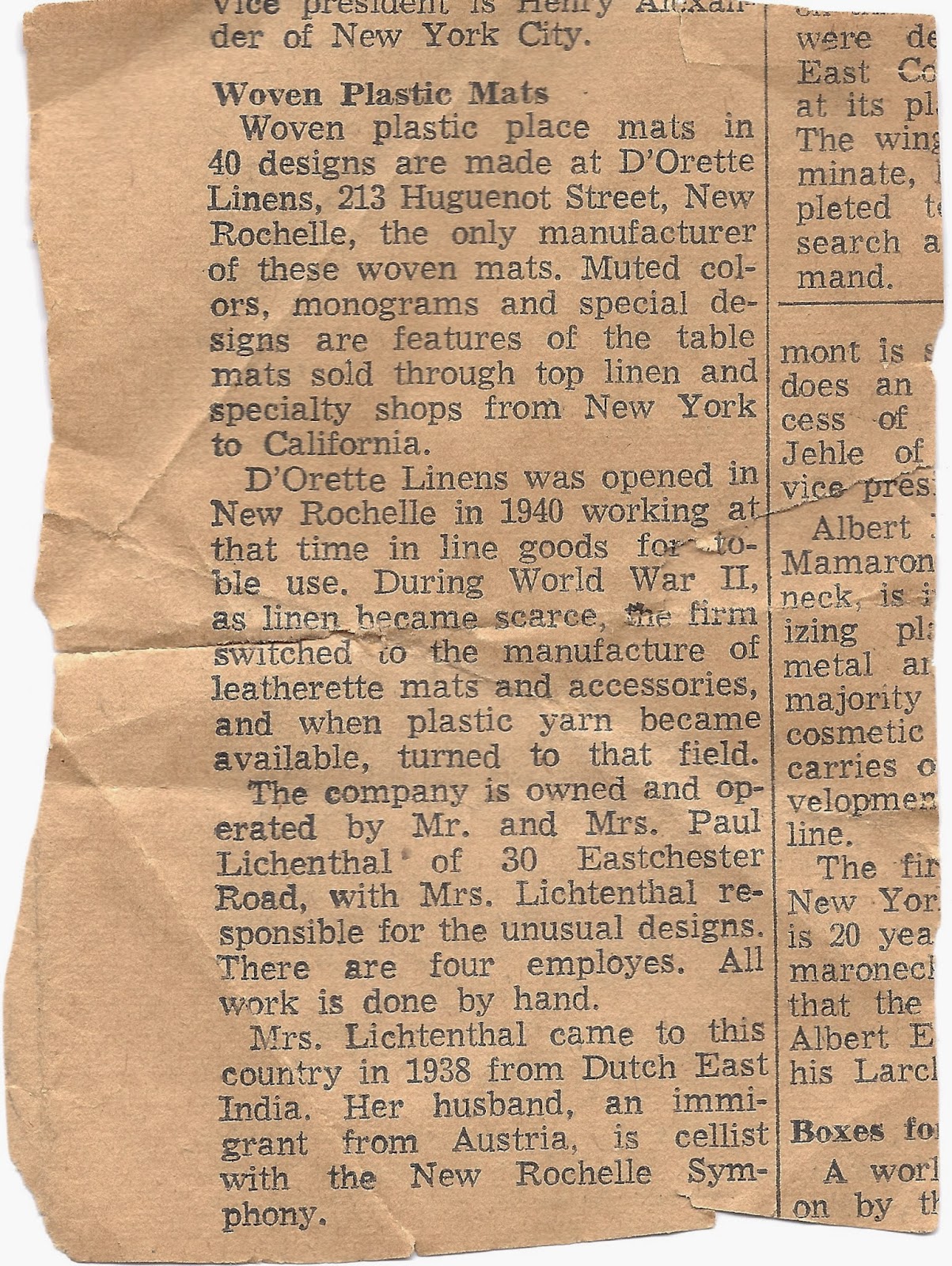 Rose became a naturalized US citizen on May 30, 1944. During this time she and her husband Paul were building their business, D’Orette Linens, named for their daughter. They opened the business in 1940, manufacturing woven plastic mats.