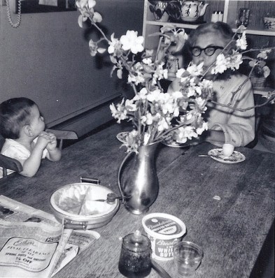 would credit her with the cooking gene as well, but I’m pretty sure that went from her mother to mymother to my girls, skipping me entirely! Omi did have a few “specialties” however: “vanilla milk”- warm milk mixed with vanilla to help us get to sleep, “bread balls” to dip in the yolk of soft-boiled eggs are two I can think of.