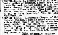 On October 23, 1948 Estelle died at the Park East Hospital in New York after a brief illness.