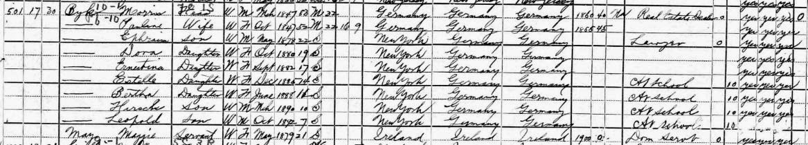 Estelle Byk was born on December 1, 1885 in Brooklyn, New York. Her parents, both immigrants from Germany, were Moritz “Morris” Byk and Pauline Falk. According to the 1900 US Census, Estelle’s mother had borne 16 children, 9 of whom were alive in 1900. My research has definitively determined names and birthdates of 9 children born between 1870 and 1892; 4 boys and 5 girls.