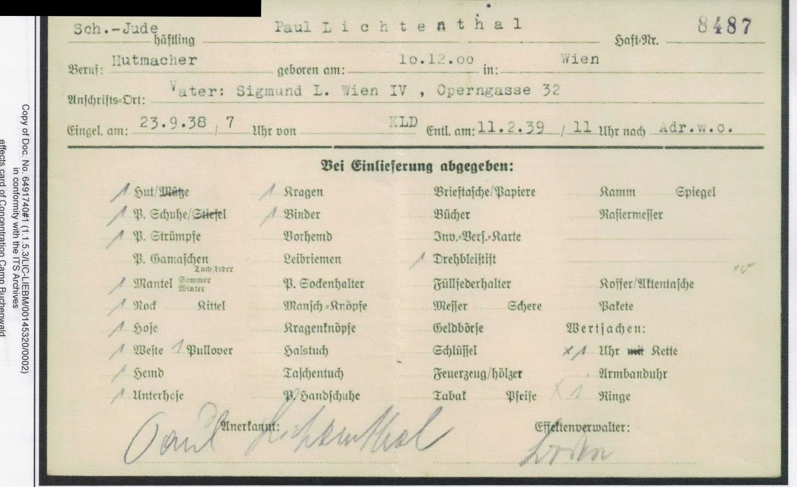 | 1938 Buchenwald Effects Card |