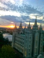 Dinner that night was organized by the Hospitality Committee. It’s a great chance to meet new people and is geared towards those attending the Conference alone. We went to The Garden Restaurant on the 10th floor of the Joseph Smith Building. What a gorgeous building! Formerly the Hotel Utah, it is now an office building. The view from the windows at sunset was beautiful. My lousy photography doesn’t do it justice. The inside of the building is as impressive as the outside. Oh, yes. The food was good too, as was the company. Maybe the company was a little too good. Apparently, my natural charm and wit was misunderstood as I had to explain to one dinner companion that I was married and not interested in any after-dinner activity. Awkward.