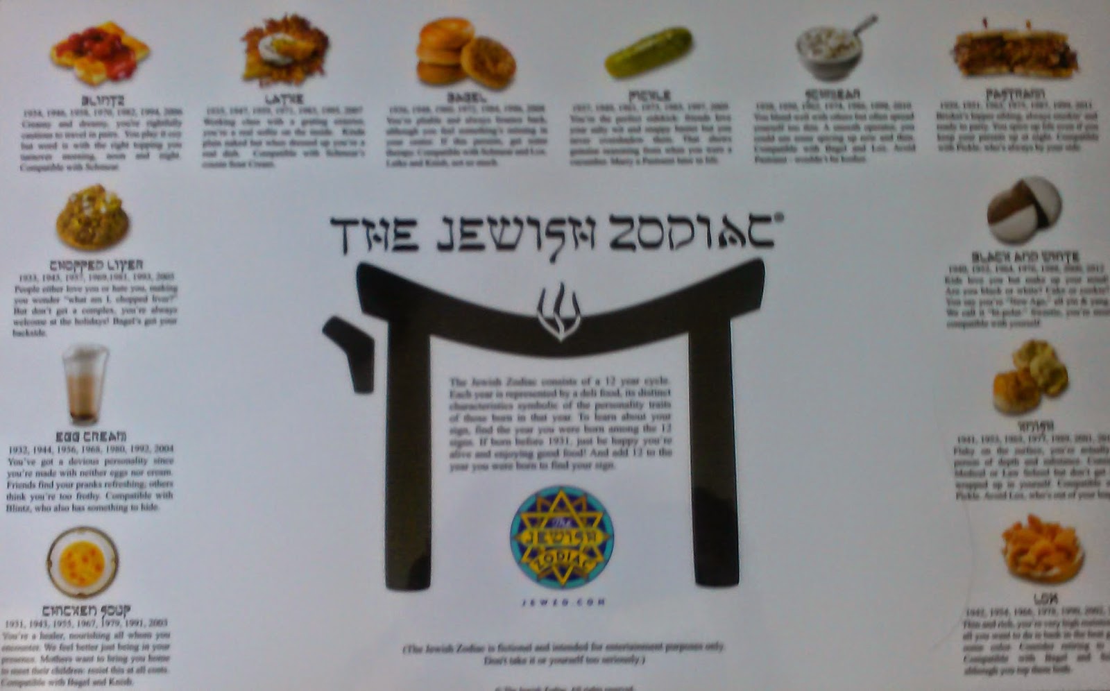 | Partial picture of the “Jewish Zodiac” ® placemat. |