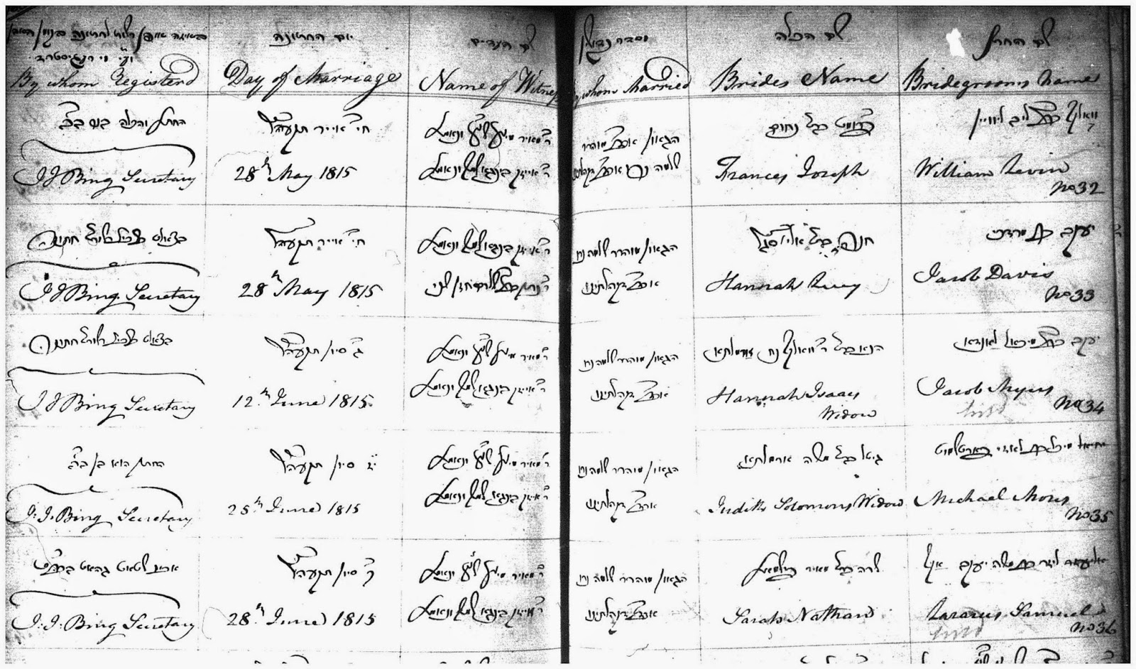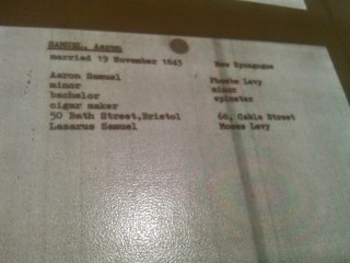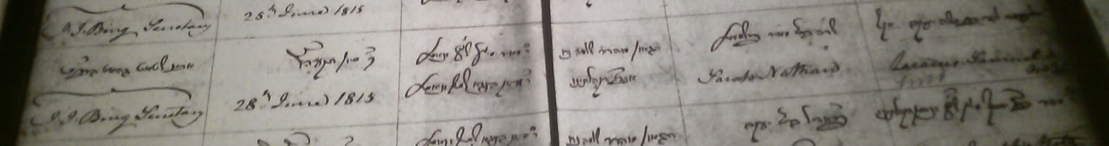 But perhaps the best find was the 1815 marriage record of Lazarus Samuel and Sara Nathan. I have been unable to determine Lazarus’ mother name nor find any more on his father other than his name.