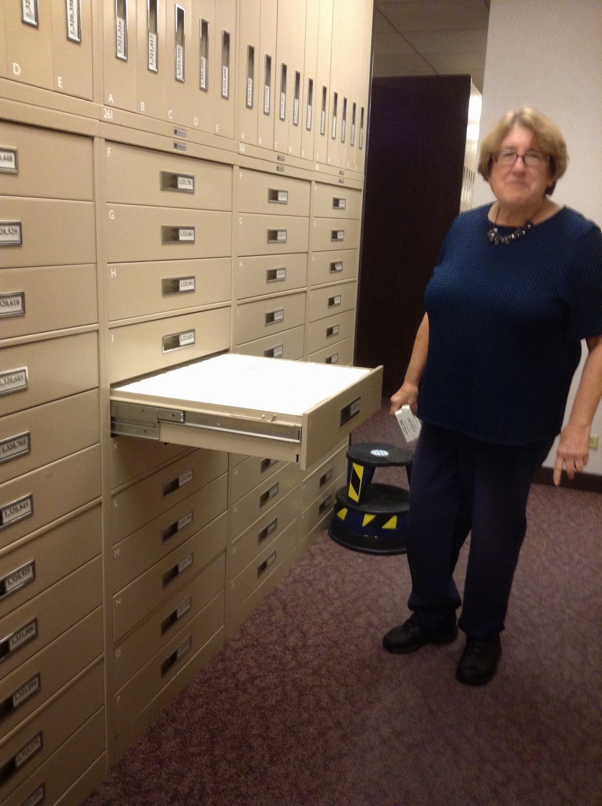 The woman in the photo probably thought I was pretty weird. She asked me (in an annoyed voice) why I had left that drawer open. I told her I was taking a picture for my blog to illustrate how the microfilms were organized. She then nicely agreed to being in the photo.