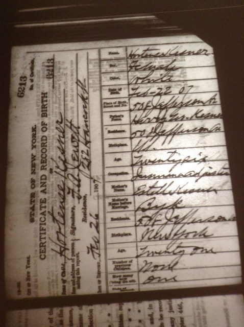 | Birth Certificate for my paternal grandmother, Hortense Kesner |