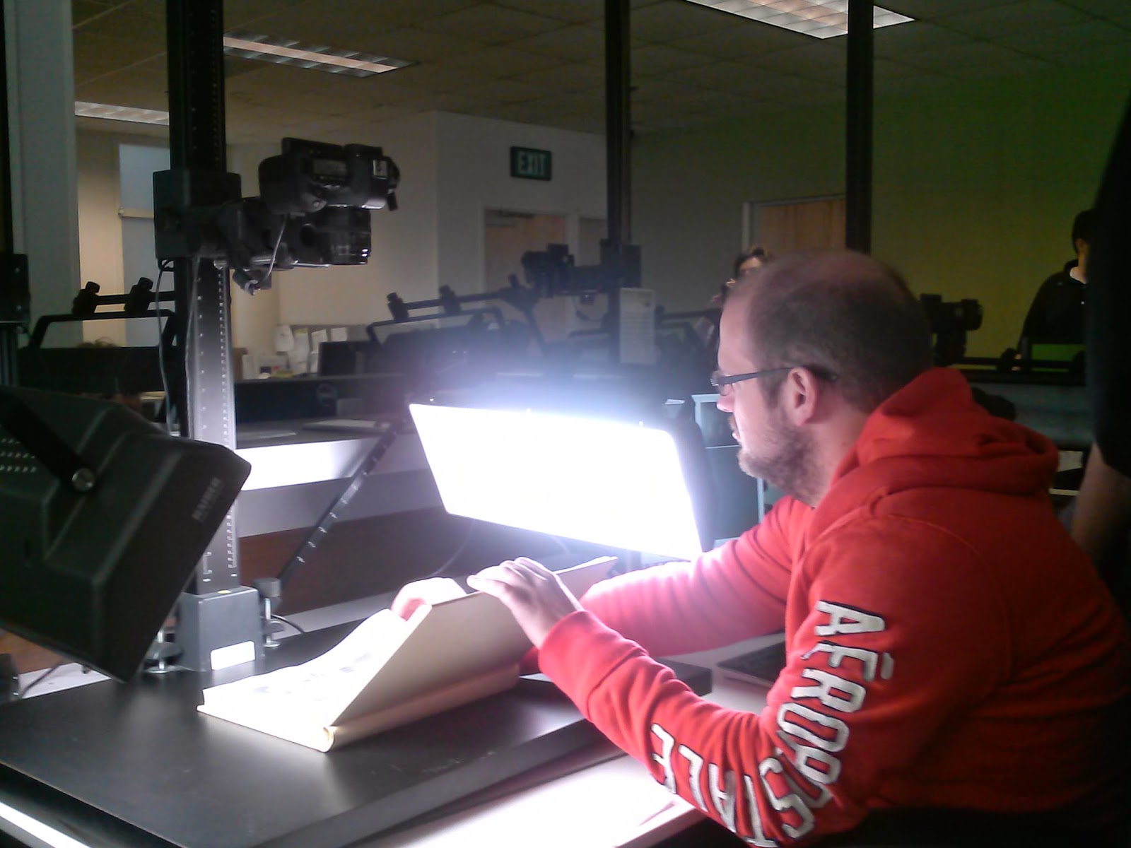 Imaging books that can’t be taken apart is quite time-consuming. To speed up the process only the odd number pages are scanned, then the book is flipped around and all the even number pages are scanned. The computer then re-paginates the book correctly. I plan to use this tip when scanning material myself in the future!