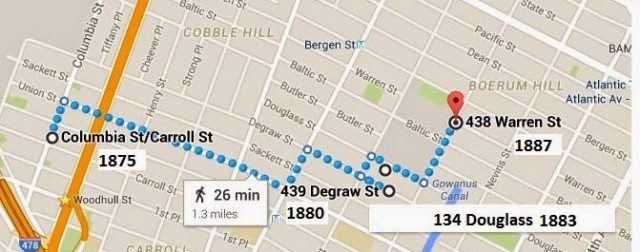 | Aaron Samuel’s Brooklyn Residences With thanks to Google Maps |