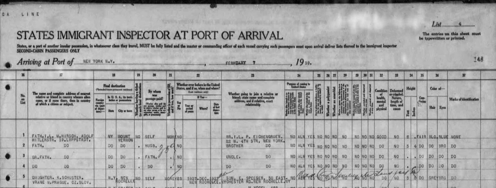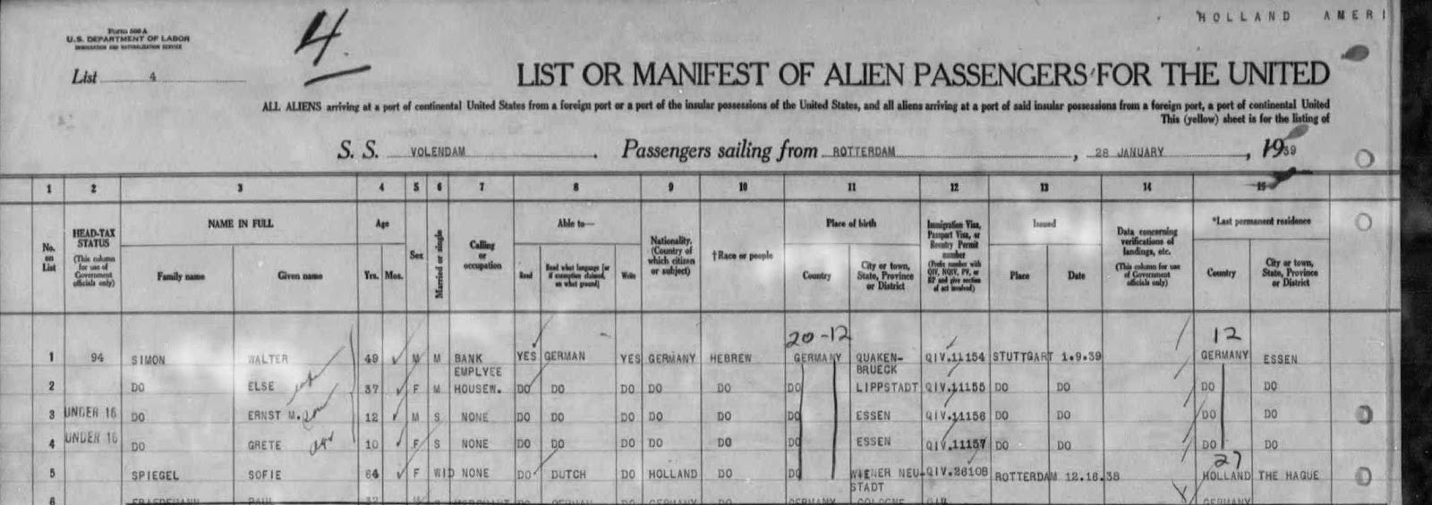 On February 7, 1939, Sophie arrived in the United States on the SS Volendam.