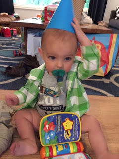 I retired from full-time teaching in June, which has allowed me to be more present in Jack’s life. As he lives 2000 miles away, it has been wonderful to just “up and go” several times in the last year. I like to think my presence during the first weeks of his life somewhat contributed to the fact he is still here to celebrate his first year. There were some tough times! Looking back on my first months as a grandmother, I recall lots of tears (mine and my daughter’s), many phone calls and the ever-present wish to “make it better.” This weekend, I am enjoying the fruits of the struggle. Jack is a wonderful little man.
