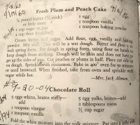 The images to the left and right are from Mom’s cookbook. She added the date every year when she made our cakes. Some years, grandchildren helped her and their names are included with the dates.