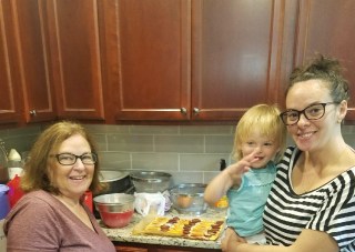 Mom passed away in 2011, but the tradition continues. This year, my youngest daughter, my niece and my granddaughter ( the fourth generation!)  carried on “Omi’s Legacy.” Amazing to think these cakes have been baked in that very same kitchen for 54 years!