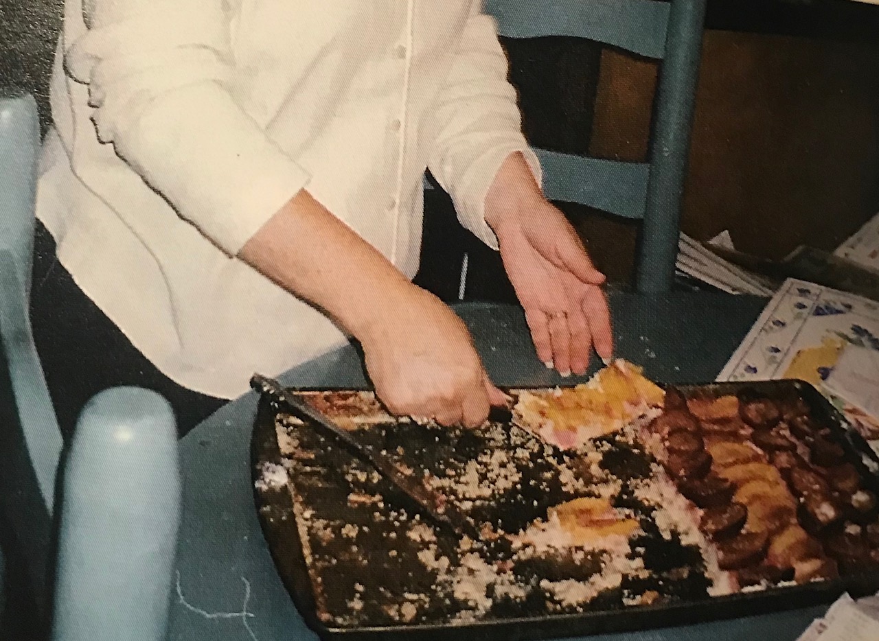 The photo above shows a half-eaten thin crust. Those are my hands!! This was probably taken sometime in the 90s.
