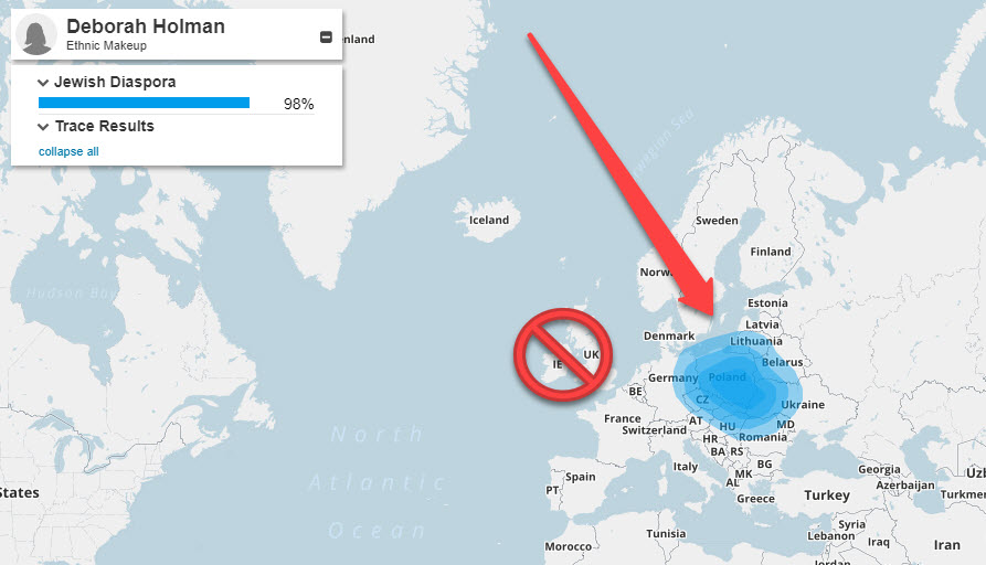 Notice the big blue bubble over Europe? I used a red arrow to point it out in case it’s not clear that ALL my DNA originates from that area of the world.