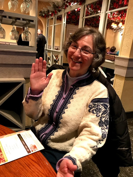 Next stop, dinner at the Olive Garden. My knee was pretty achy, so we were pretty lucky to have the conference center, the restaurant, and the hotel all in the same block. Imagine my surprise to see my blogger friend and member of JGSCT (Jewish Genealogical Society of Connecticut). Marian Burk Wood at the restaurant, waiting for a table! Marian graciously invited us to join her. We spent an enjoyable evening chatting with Marian, her husband, and fellow blogger Yvonne Demoskoff and her husband.