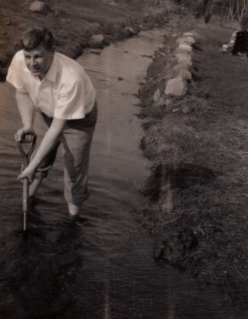 Dad also terraced the backyard, dragging wheelbarrows full of rocks from the pond down the road. To complete the serene backyard, he dug a semi-circular trench allowing the brook that ran behind our yards to flow through our property. The neighbors were not happy about the water being diverted!