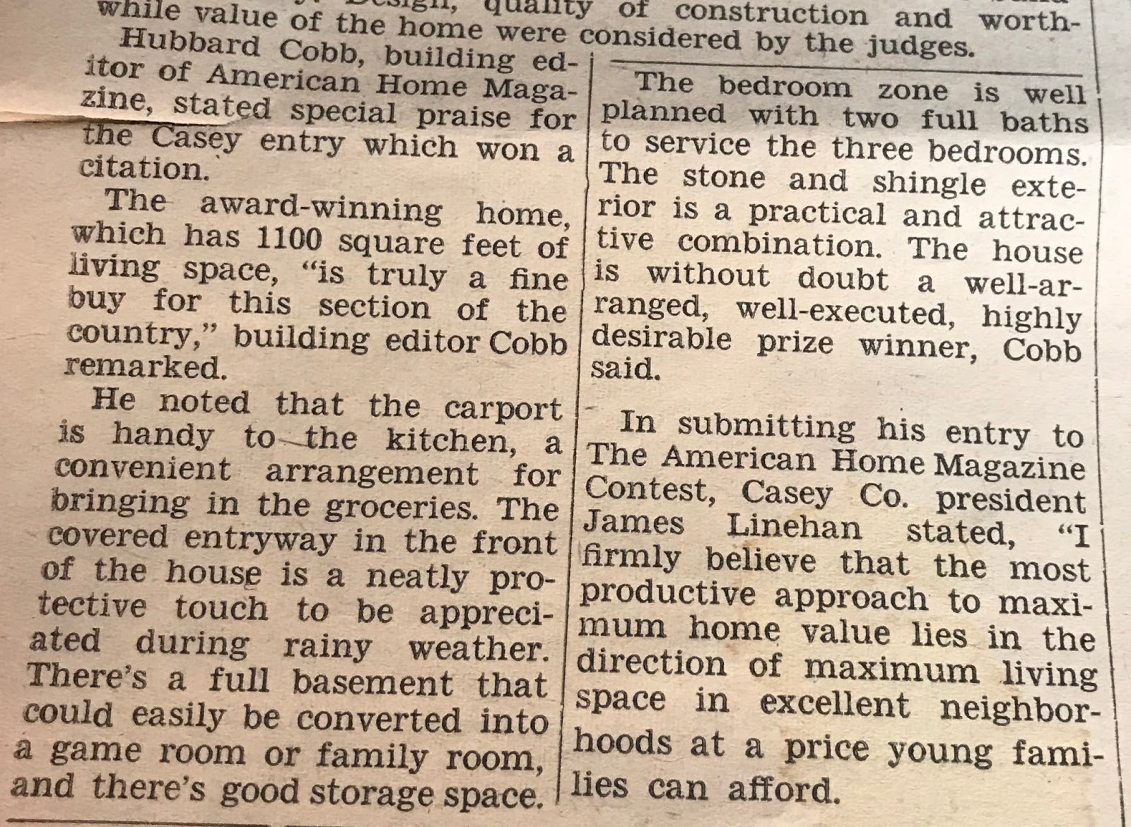 Mom was so proud of her new home. Having lived her entire life in apartments, this was the first single-family home she ever lived in. It was a house to be proud of. Touted as being “situated in a picturesque country atmosphere,”[3] the design won an award for “the Best Home for the Money.”[4]