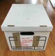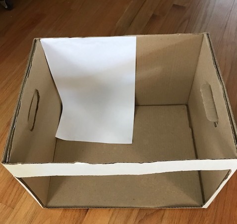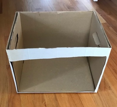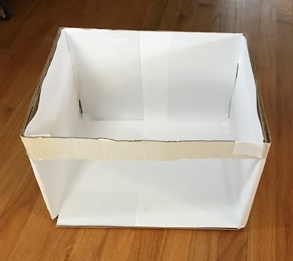 Get a box. As you can see, I used an old Banker’s Box that I had in the basement, (Full disclosure: There were books in this box. Now they’re back on a shelf!)
