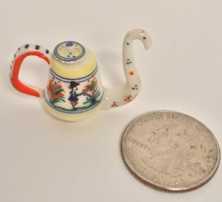 Now, you may think I’m a little morbid when you read the description of this lovely Quimperware pot made many years ago by Elizabeth Chambers. I prefer the adjective quirky!