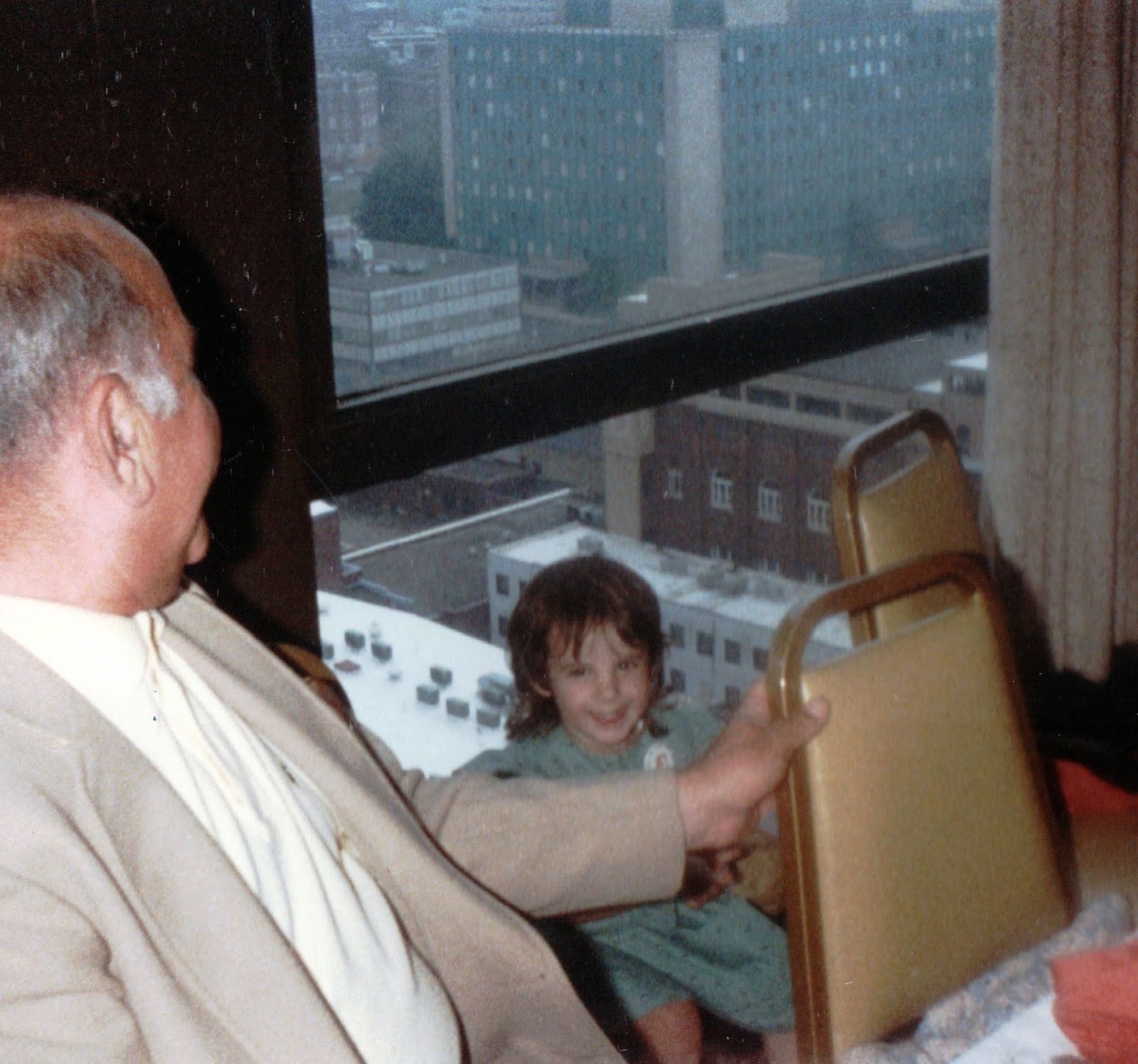 | PopPop (Alfie) and Caitlin at Top of the Park (Park Plaza Hotel) in New Haven – June 1988 |
