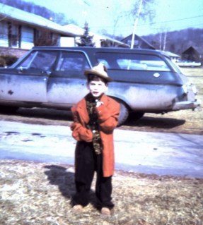 | My first car – a hand-me-down Plymouth station wagon. That’s my brother Dean in one of his many “costumes.” |