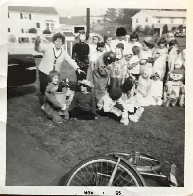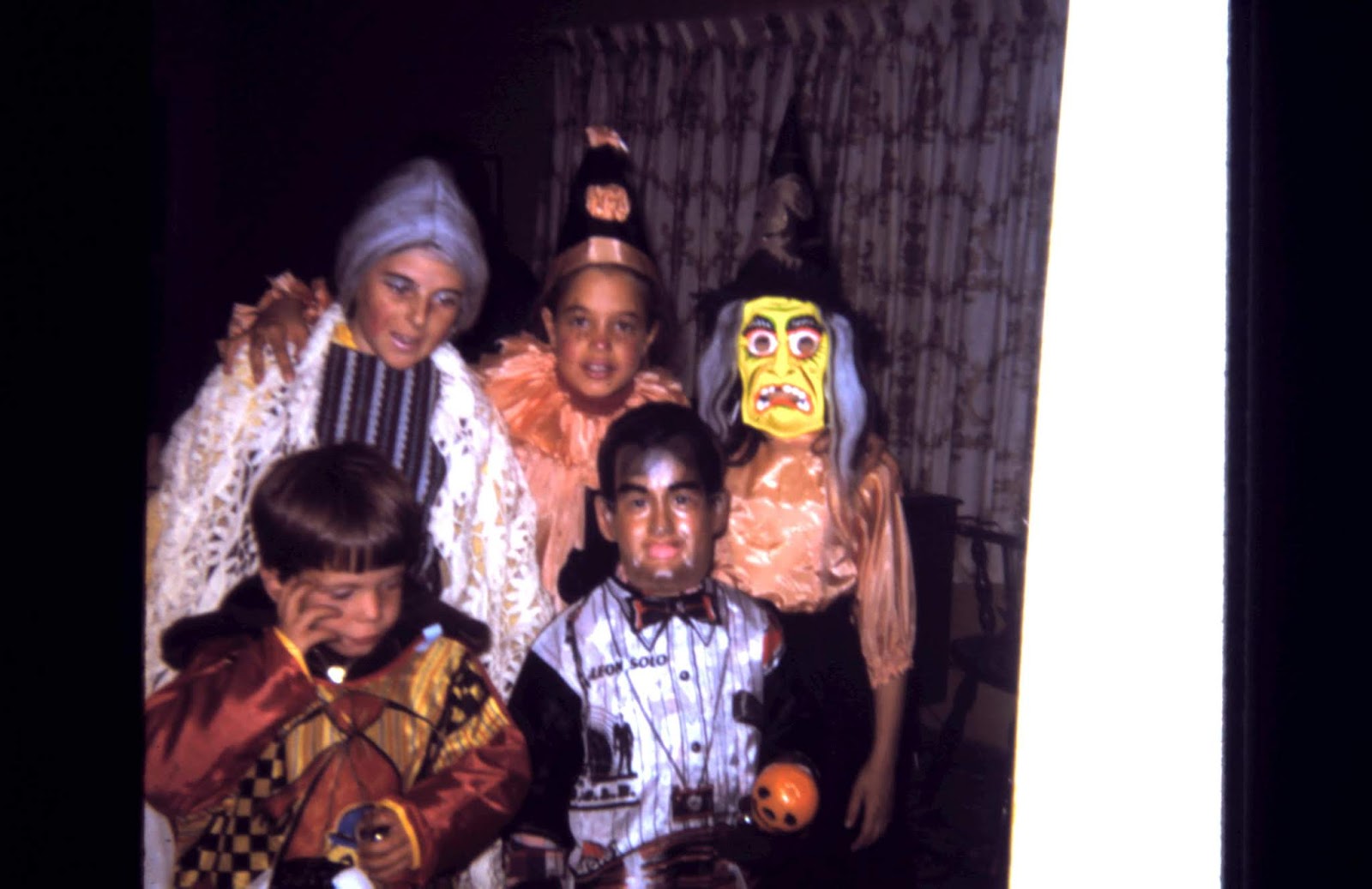 I thought you might enjoy seeing a few of my favorite Halloween photos from years past. The first photo was taken Halloween afternoon, 1965 in Paula’s Goddard’s yard. Our little suburban neighborhood was called “Paradise Hills.” It probably should have been called “Peyton Place”, but that’s a subject for another day! (Sorry to you “young ‘uns” who have no idea what I am talking about.)