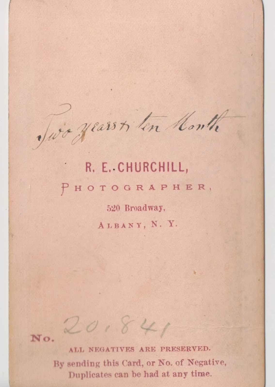 The best surprise was a few portraits from a photography studio in Albany. On the back of one is written, “two years, ten months.” I have been unable to verify the birthdate of Katherine Pearl, Catherine’s youngest daughter so this could be extremely helpful. I have scheduled a photo consultation with Maureen Taylor, the Photo Detective, during my visit to RootsTech at the end of the month. Hopefully, she will be able to assist me in making a determination!