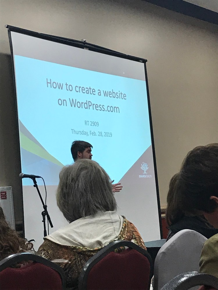 While I was working with Dennis and three of his colleagues at the WordPress booth, the nationally-known genealogy blogger, DearMyrtle, came up on her scooter. She needed to talk to somebody about her blog. I introduced myself as a “newbie blogger” and happily offered her my spot since I had a lot of time. But lovely woman that she is, she insisted I stay where I was and she went on her merry way, saying she’d come back later.