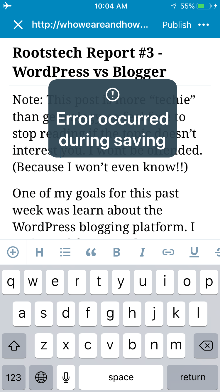 I’m playing it safe and copied the draft to the Notes app on my phone so I could keep writing.
