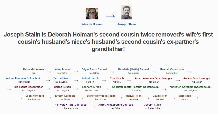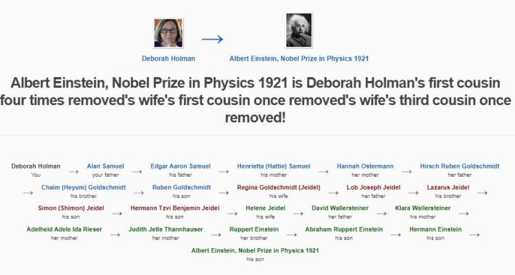 However, you can search for connections between yourself and those on the list of most popular profiles. A few years ago I wrote a post about my struggle in choosing who to include in my family tree. While writing that post, I discovered I was marginally related Albert Einstein. So, it seemed reasonable to return to the Geni site to find who else I shared a family bond with.