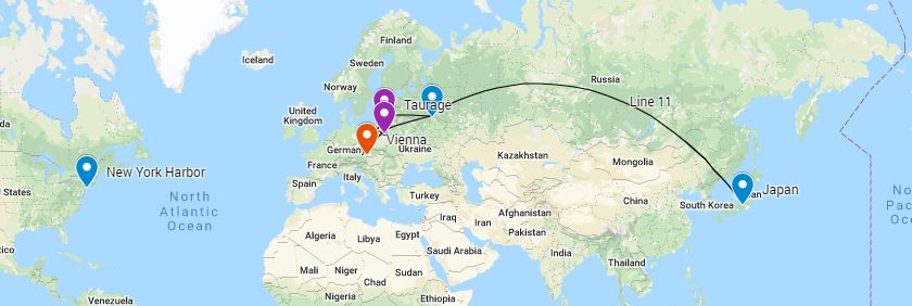 I have no idea the route they might have taken from Japan to New York, but its a moot point since they were given a new route a few days later. That’s probably a really good thing. I can’t imagine what that trip might have been like for my great-grandparents, who were 65 years old at the time. The trip across Russia would have been exhausting. The voyage from the mainland to Japan and then on to the United States might have been more than they could have handled. Perhaps I will discover the reason for the change in itinerary as I dig deeper into Sigmund’s life.