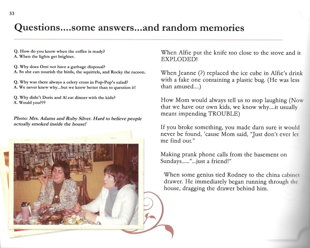 In my last post I wrote about the family cookbook we created in 2010. So many of our family memories happened either in the kitchen or during family meals. We included a few in the cookbook.