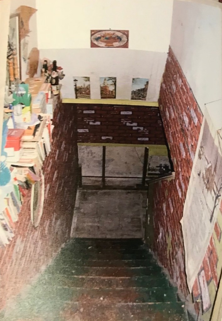 Mom’s collection was mostly stored on the stairway leading down from the kitchen to the basement. This was actually pretty convenient. Unless someone was trying to pass you on the stairs as you were attempting to select a book. That could be dangerous! I could write an entire post just about events related to that staircase! (Remember the day Dean fell down the stairs in his chair?)