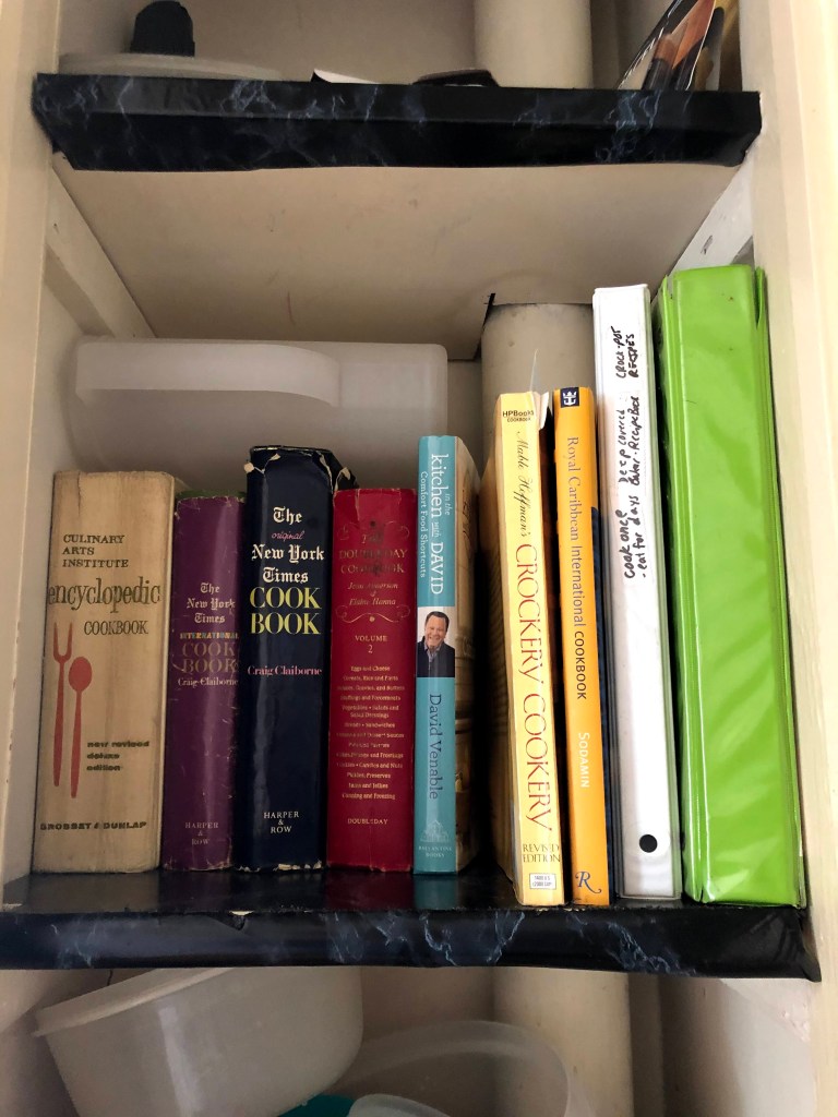My mother had an amazing collection of cookbooks. I think she even used many of them! I also amassed a decent size collection, but as I said in an earlier post, I’m not much of a cook. I am a collector though – hence, the collection of cookbooks I never use. (I actually thinned the herd a few months back leaving the few books I actually touch once in a while!) I think I donated at least 20 to the Goodwill!