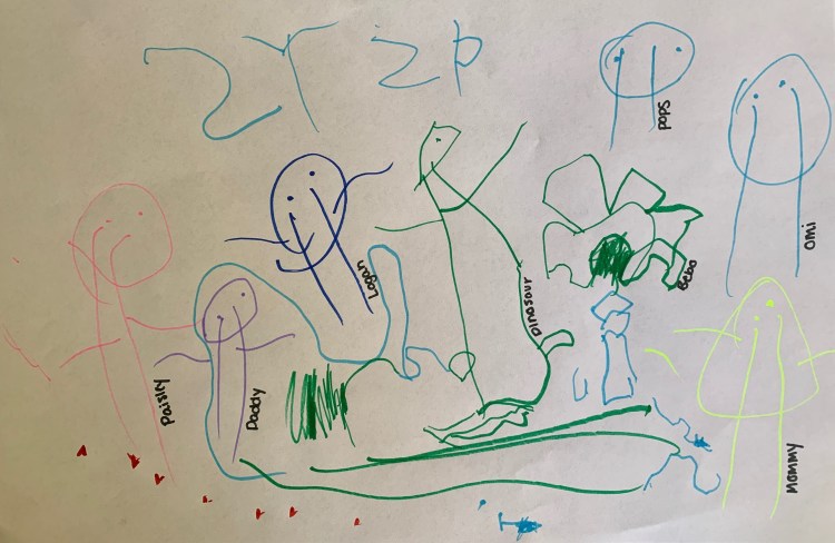 But, hands-down, the most interesting drawing may have been done by my grandson, Jack. He just turned 6 this week. I’ll try not to read too much into it. (I’m not a child psychologist but if you are, feel free to share your comments!)