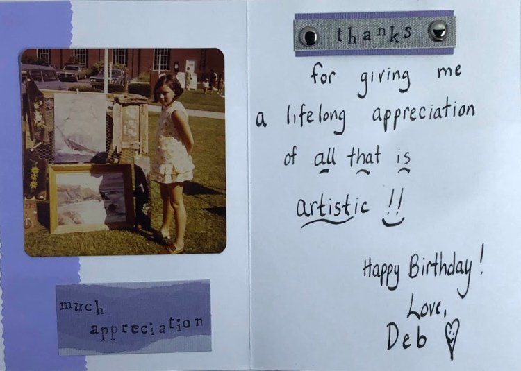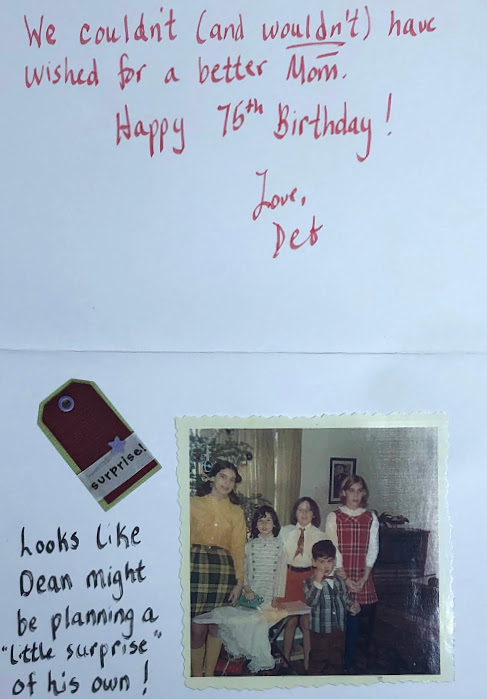 In 2007, as part of our mother’s 75th birthday celebration, we arranged for her to receive 75 cards from friends and family. To make up the balance, I created 16 cards. I recently came across the cache of cards while organizing papers. Since I haven’t posted much lately, I decided to share my “creations.” It also occured to me that my siblings probably never saw any of these cards as they had been given to Mom.