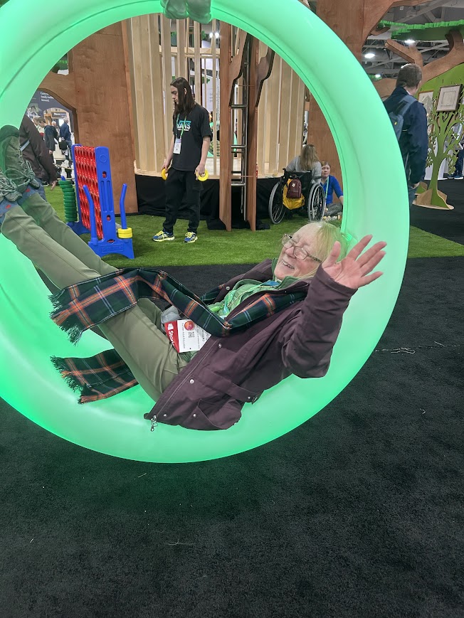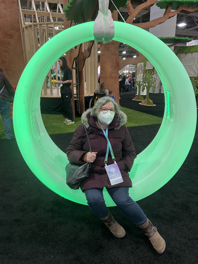 Cheryl and I hit the Expo Hall after our sessions. We attempted to take a VR (virtual reality) trip but I couldn’t work the buttons on the paddles! Cheryl had a little more success – she went to Boston. We had a lovely chat with Sapir at the MyHeritage booth. She loaded us up with a bunch of goodies! Cheryl lost her badge so we killed some time looking for that – it was at the Lost and Found – but we got lost looking for the lost and found!