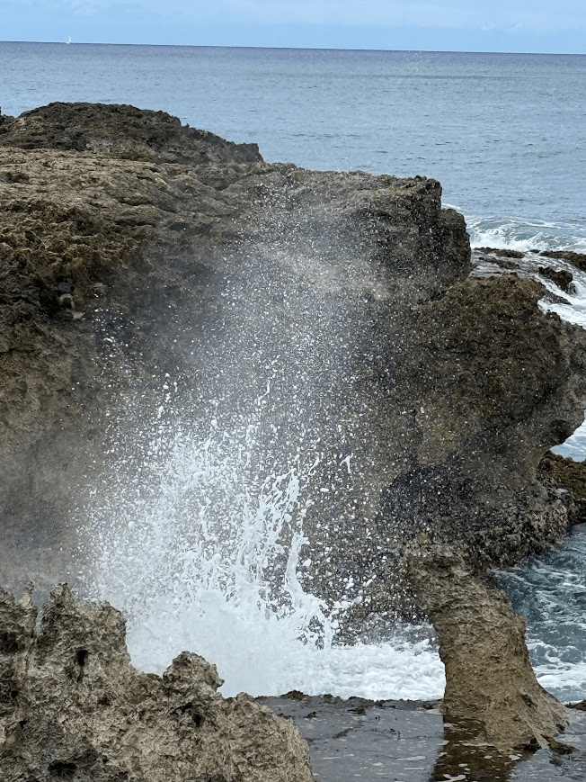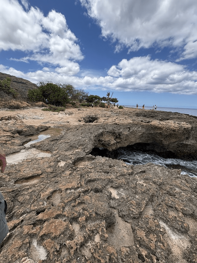 Just steps from the turquoise shimmer of Mermaid’s Cave on Oʻahu’s west side, you might notice something unexpected — a scattering of old headstones embedded directly into the volcanic rock. They’re weathered by salt and time, some with pipes or metal tubes rising from the sand. They aren’t decorations or markers for Mermaid lore. They’re graves.