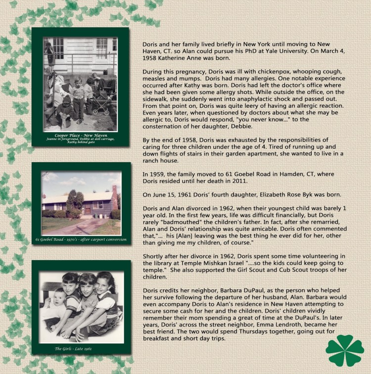 I originally posted these scrapbook pages in 2016, but thought I would “reprise” them in honor of the 14th anniversary of Mom’s passing. I actually had to do the math TWICE as I couldn’t believe that much time had passed.