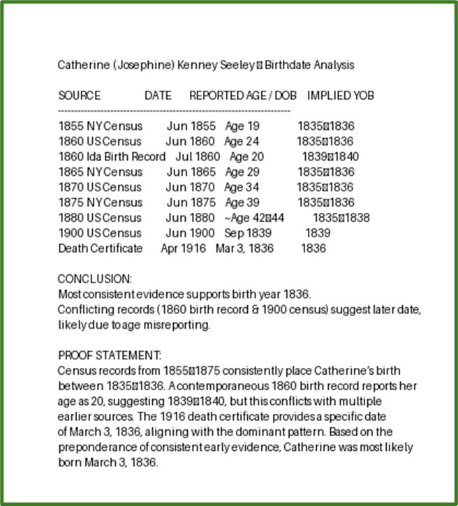 I’ve been trying to pin down Catherine’s actual age and origins since I first began researching her in 2013. Accuracy matters. But between missing records, a burned census (thank you, 1890), and Catherine’s casual relationship with the truth, I never reached a firm conclusion.